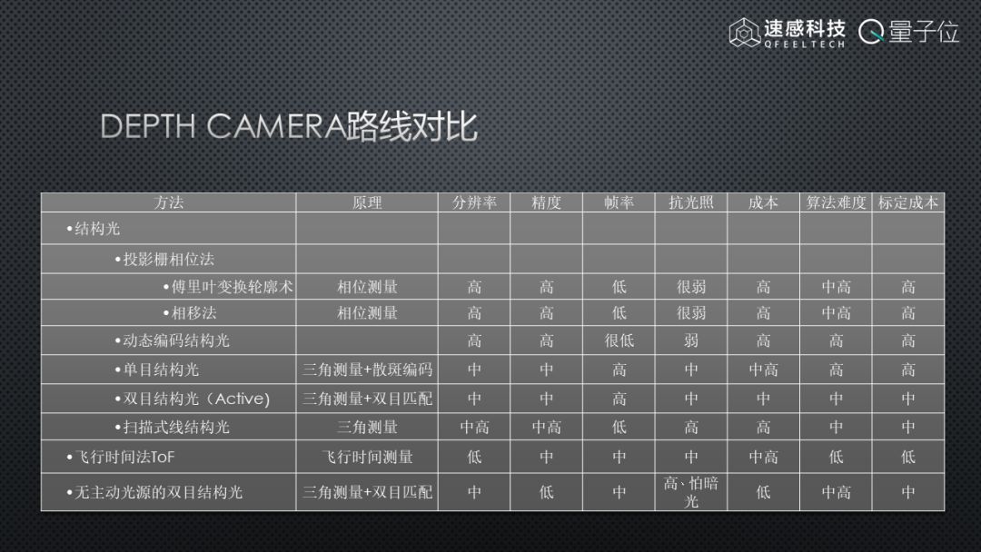 从大类上可以分成三种:两种带主动光源——带结构光的摄像头和飞行时间法的摄像头;还有一种是基于多目的被动光深度摄像头。