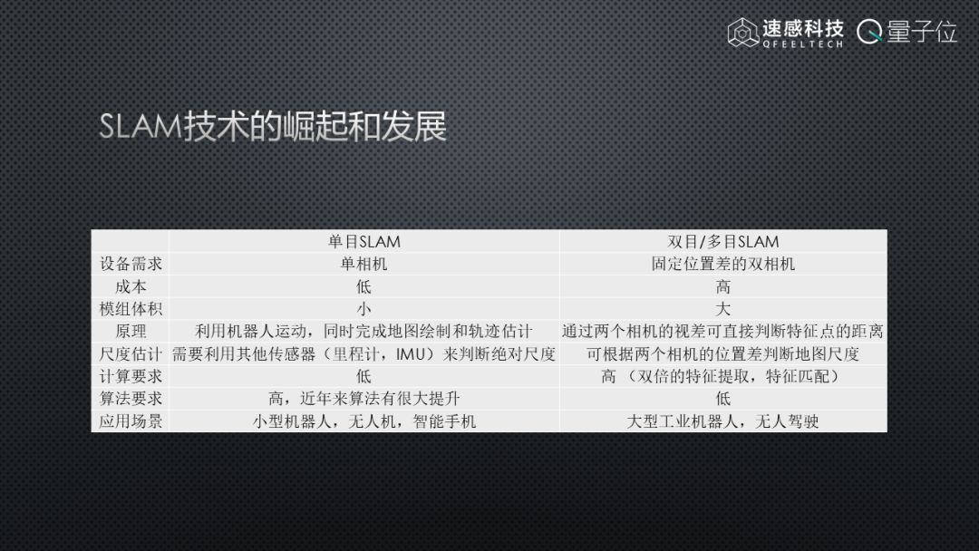目前主流的SLAM还是希望用视觉和惯性器件来做这个组合,大家用得比较多的也是单目SLAM和多目SLAM两条主线。