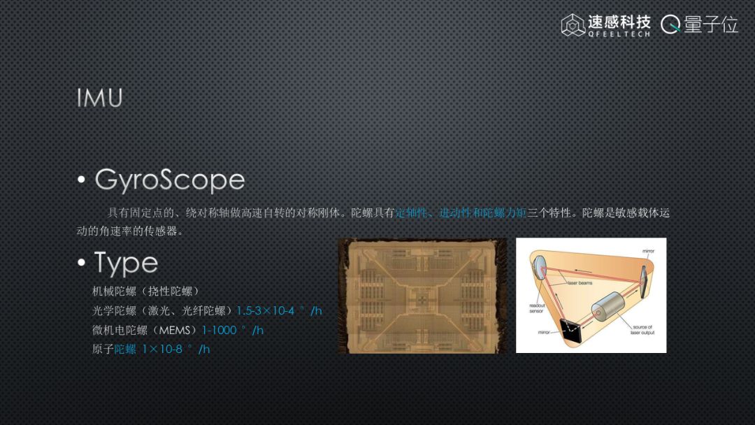 为了实现整套SLAM,除了摄像头以外,其他传感器也是特别关键的,比如说IMU(Inertial Measurement Unit),主要由陀螺仪和加速器构成。