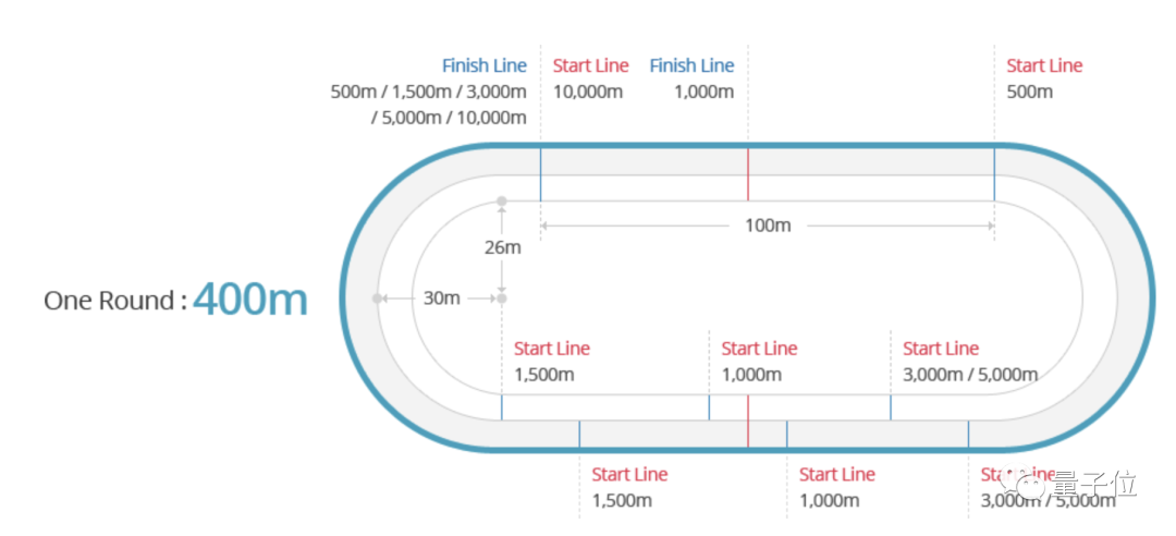 参赛选手两两为一组,在400m长的赛道上角逐,每滑过一圈交换内外道以平衡距离的差异。
