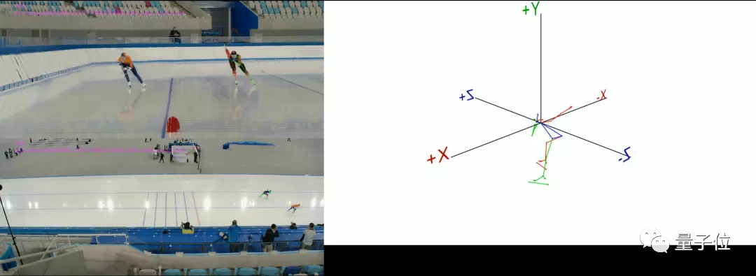 第一,AI根据摄像机拍下的视频,提取运动员的关键骨骼点信息、身体关键部位的姿态、运动轨迹和位置信息等,并进行三维重建。