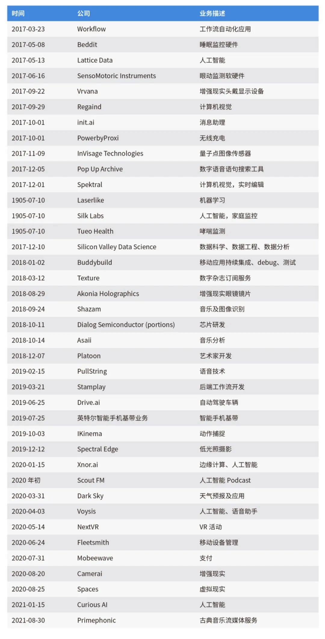 我们将这些并购列在下面,基于这些初创公司的成果,苹果未来会如何建设其软件生态?欢迎在评论区中继续讨论。