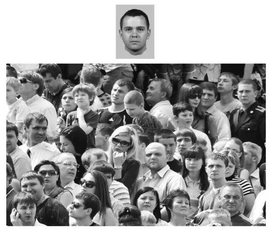 最后一次测试旨在复制一个非常具体的警务场景,即警官有一个综合目标脸(使用EvoFIT:一个综合系统生成),他们必须在人群中找到这个人。