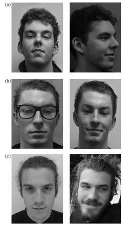 为这项调查开发了三个新的项目管理小组。当(A)人脸在两幅图像中发生严重变化(即45°以上)时,(B)演员只在一幅图像中戴眼镜时,这些参与者是否有能力同时匹配一对男性白种人脸,而且(C)演员在一张照片中有胡须,但在另一张照片中剃得很干净(见下图)。