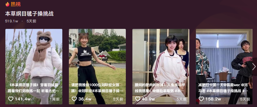 而真正让刘畊宏获得全民知名度的,那就不得不提他自创的《本草纲目》毽子操。