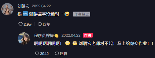 这样炫酷的方式也吸引了刘教练的注意,称这份作业很“cool”。但由于将刘教练的名字打错了,小姐姐又收获了一波“吐槽”: