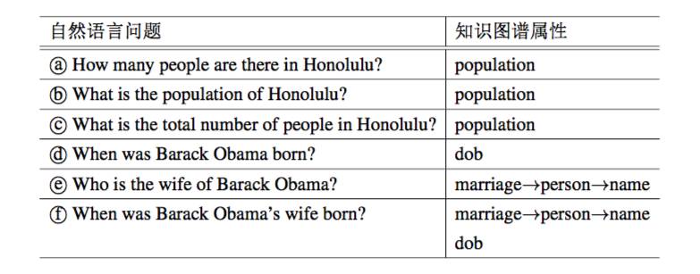 表 1.1:自然语言问题及其在知识图谱中的属性对应。