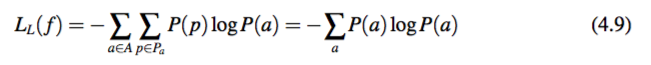 一般性 通过最小化 LL( f ),模型可以找到具有一般性的模板。假设 A 表示所有在分配 f 下的模板,Pa 表示 a ∈ A 对应的动词短语集合,即满足 f(p) = a 的动词短语集合。根据公式 4.1 和 公式 4.7,有: