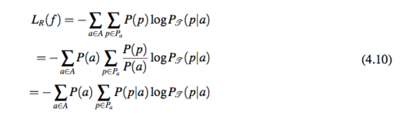 特殊性 通过最小化 LR( f ),模型可以找到具有特殊性的模板。公式 4.10 的内部实际上是 P(P|a) 和 PT (P|a) 的交叉熵。因此最小化 LR( f ) 会使得模型找到使 P(P|a) 和 PT (P|a) 尽量接近的分布。这体现了特殊性原则。