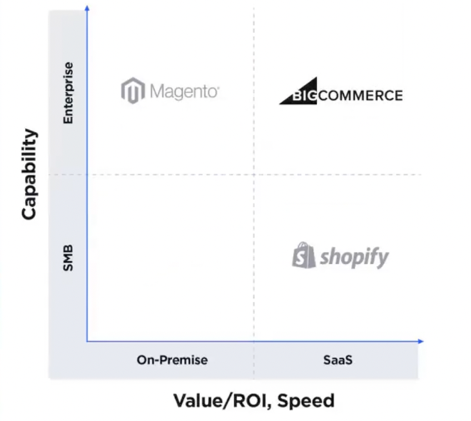除此之外还有对一对一服务的重视,比如针对Enterprise版本,我们会指定项目经理去帮助商家实现店铺上线。综合以上三点,这是BigCommerce的核心优势,也是Shopify的体量和市场份额更大、而我们的Enterprise客户(这里指有一定规模的品牌和企业客户,需要选购订阅价格更高的定制化服务)比他们更多的原因。Shopify更加倾向于面向初始阶段的SMB(Small Business,小型商家),而当品牌成长到一定体量就会需要更灵活的功能和安全可靠的性能。