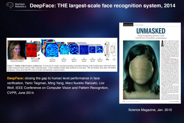 2013 年的 8、9 月份,我们成立了 Facebook AI research,开始叫做 Facebook AI Lab。当年 12 月份的 NIPS 上,Yann LeCun 被 Mark 说服后就加入了我们。之后改名为 Facebook AI Research。在 Facebook,我主要负责的人脸识别后端系统跟算法。2015 年,我回国和余凯、黄畅一块创立了地平线机器人。这一波 AI 浪潮来势凶猛,我们想在这个浪潮之中,顺应历史发展潮流,做一些事情。