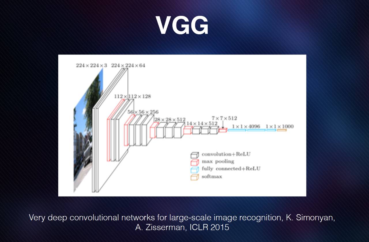 一个主要的一个变化是基本上主要采取最简单的 3 × 3 的卷积。他们觉得 3 × 3 的卷积就可以完成任务了,此时的层数是到了 19 层,参数又多了很多,之前可能是八九层。基本上来说,VGG 某种意义上就是把 CNN 推到了极致。
