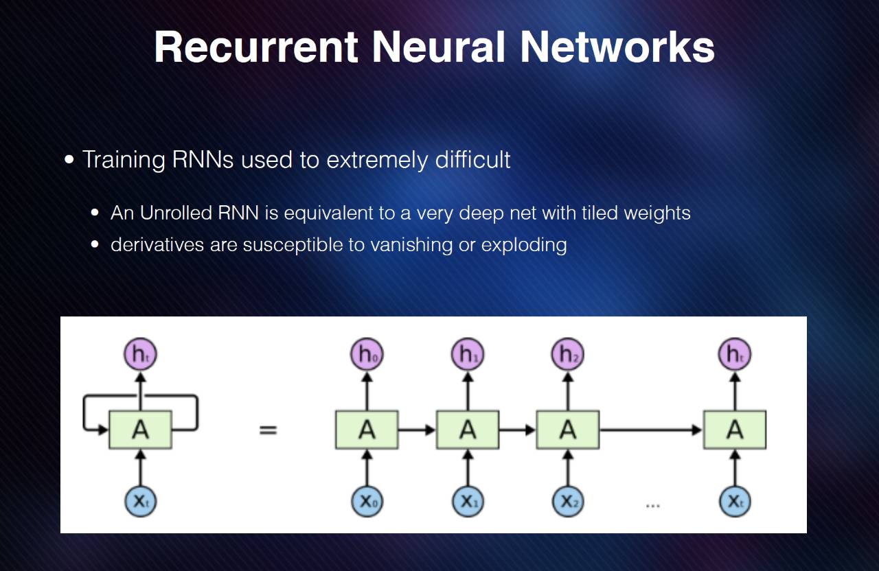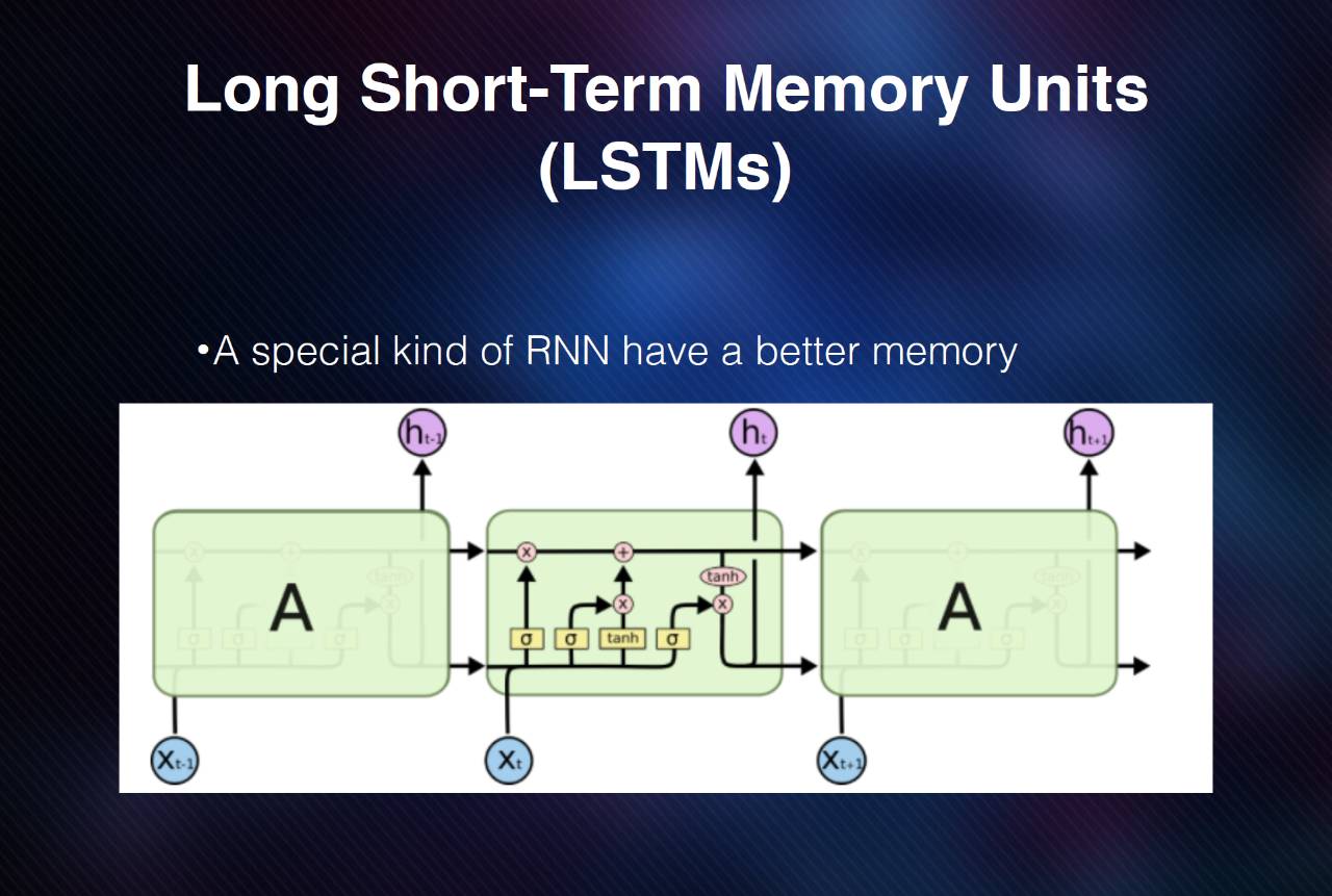 概念上简单地来说,我们加了一个状态,那么每个神经网络神经元就记住了一个数,那么这个数会对多长时间的预测有影响呢?是可以记住一个时间单位,还是十个时间单位还是一百个时间单位?从道理上讲,其实没有限制,你可以记录很多时间单位,但实际上其实是很难控制的。这里的一个改进就是 LSTM,它把长时间的记忆跟短时间记忆比较显式地在网络结构中描述出来。