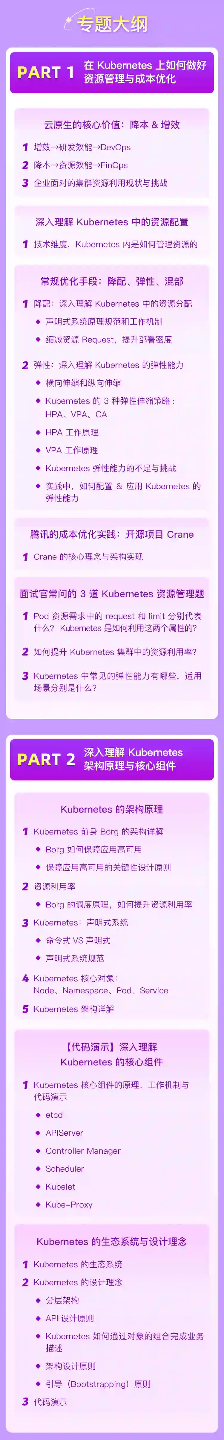 今天就给你推荐一个非常牛的体验课“深度理解 Kubernetes 资源管理”,腾讯云容器技术专家孟凡杰主讲,带你从原理到实践,吃透 K8s 资源管理,再也不用担心集群资源被浪费~