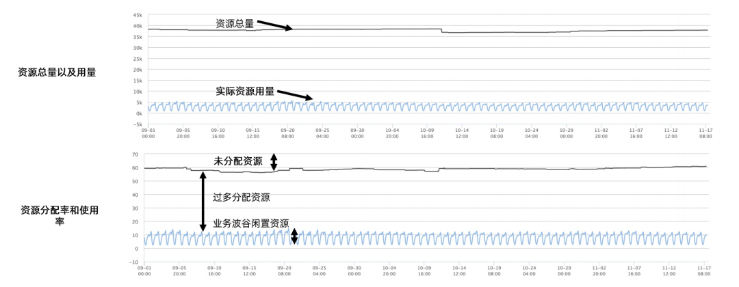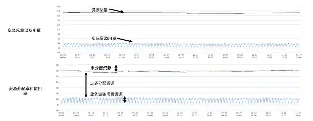 这是我拉的两个半月的真实数据,可以看到集群资源被极大的浪费了。