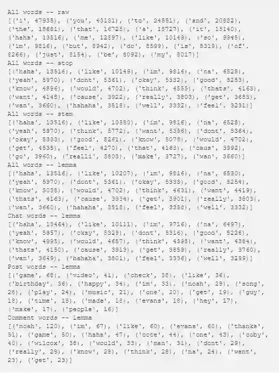 对大多数数据来说,我只需要将它放入一个文本文件中,然后调用这个文本文件。但是对于 Facebook 的数据,我需要做一些额外的预处理。
