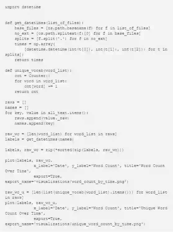 我想知道我的词汇用法随着时间的推移而变化。我们怎样才能产生呢?好吧,幸运的是我们给所有文件留了时间戳!