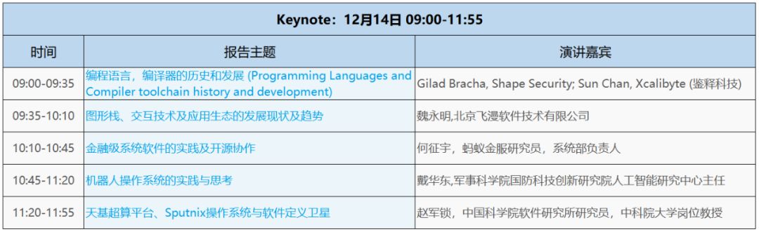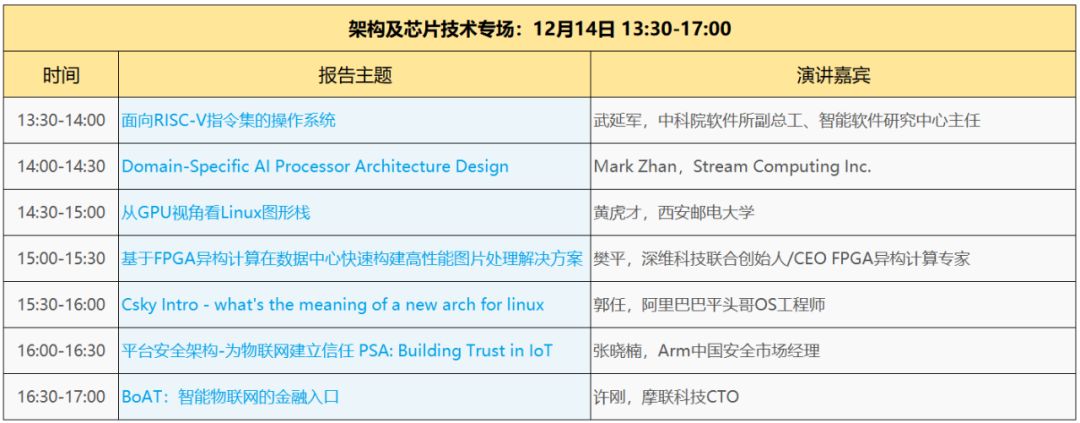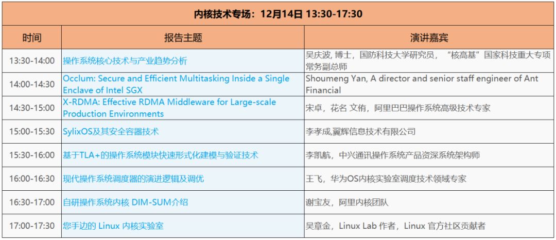会议当天上午,将由操作系统及相关领域的知名专家学者做大会的年度技术演讲;下午将围绕“内核技术”、“全栈及应用生态”、“编程语言及编译器”、“架构及芯片技术”、“虚拟化技术”等专题举行深入研讨会。大会精彩日程现已出炉,你准备好开启烧脑模式了吗?