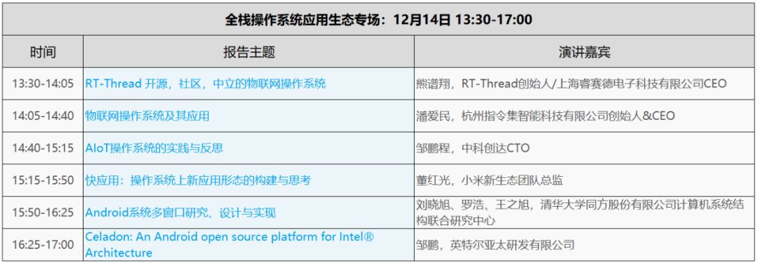 以上即是本届「开源操作系统年度技术会议OS2ATC」的全部嘉宾及详细日程,不论从嘉宾阵容,还是主题内容来看,都堪称国内操作系统类会议年度豪华盛宴,