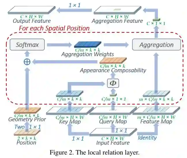 MSRA 的 Local Relation Net[7]设计了类似 Bilateral Filter 的操作,在特征相关度计算上使用了标准的 query,key,value 三元组,在空间相关度上设计了Geometry Prior。并且大胆地用这一算子替代了 卷积。其节省参数的同时,还具有旋转等变性。整个结构下来有 Transformer 的感觉,即不用 RNN,CNN来收集 context 信息,而是用 attention 来做。至于为什么起效,笔者更想归根到 Bilateral Filter 本身的效果,即保边滤波,起到了保持类间方差的同时,减少类内方差的效果。