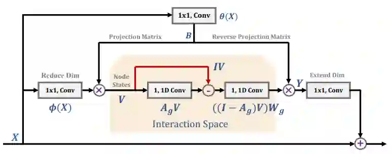 其实,和 GloRe 同一时期的相关工作还有 SGR[10], Beyonds Grids[11] 和 LatenGNN[13]。它们都采取三步走的策略,即映射、GCN 和反映射。他们的区别在于每一步的具体操作。