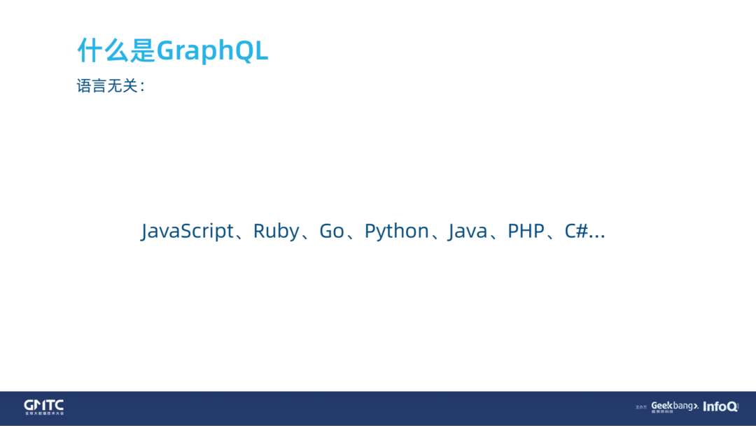 GraphQL 是一个所谓的数据抽象层,它的逻辑轻及薄,且与语言无关。Facebook 官方推荐的实现是 JavaScript,即 Node.js 的实现;在社区这个方案非常活跃,包括 Ruby、Go、Python、PHP、C# 等,在社区都有各式各样的对于 GraphQL 规范的实现。
