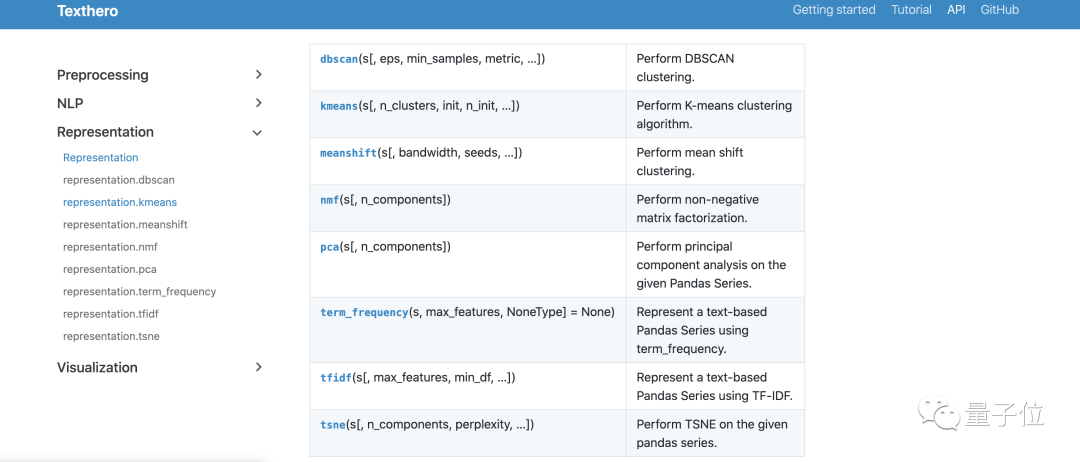 只需要几行代码,Texthero就能帮你完成想要的数据预处理、表征、可视化等操作,极大程度上解放了你的双手。