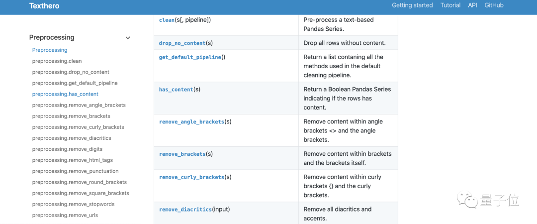 当然,如果你需要对文本信息进行更细节的处理操作,例如将所有标点符号替换成空格、或者删除<>中的所有内容,Texthero也提供了非常完备的工具包,以供使用。