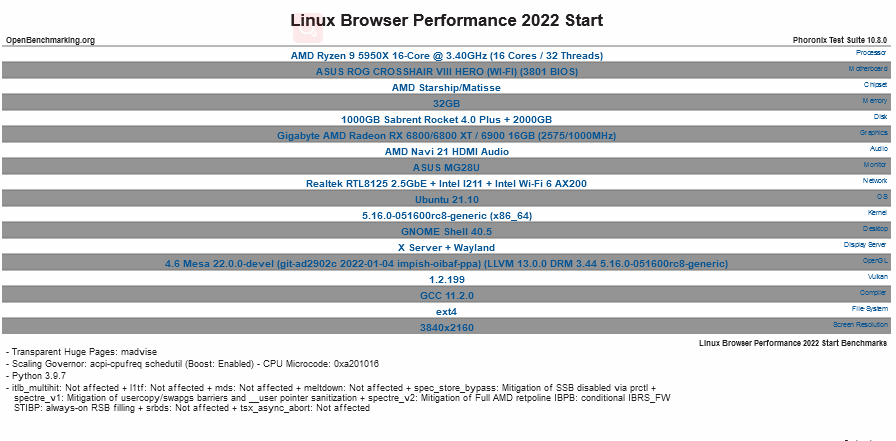 基准测试是在配备 Radeon RX 6800 XT 显卡的 AMD Ryzen 9 5950X 台式机上进行的,使用的是最新的开源驱动程序栈。