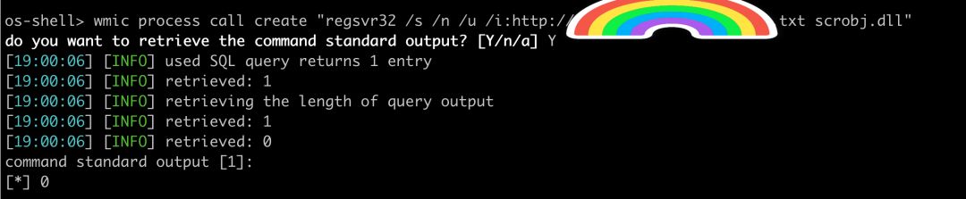 外网多个SQL注入-SQL Server DBA,无回显,360+ESET NOD32 Antivirus,regsvr32通过一个ole对象执行VBscript,使用--os-shell,底层执行的父进程是一个mssql service,所以av可能不那么关注,但是通过--os-shell直接创建powershell,就会被拦截;