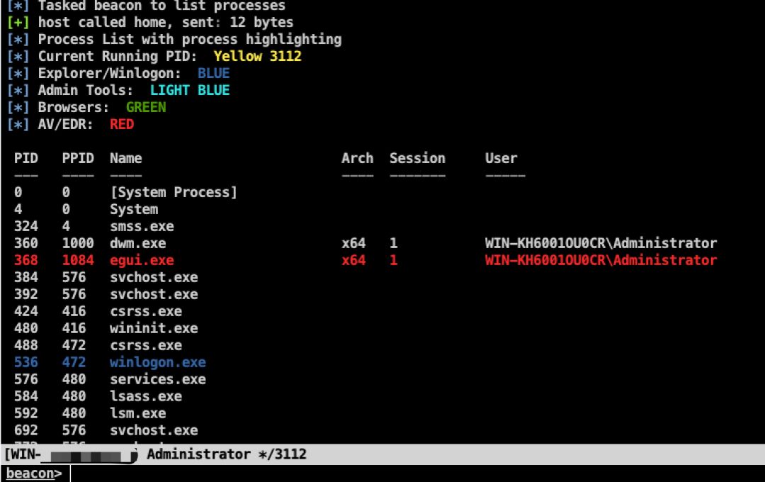 Cmd "powershell -w hidden -c $s=Get-Process;$process ='';foreach ($n in $s){$process += $n.Name+'|'}$Bytes = [System.Text.Encoding]::Unicode.GetBytes($process);$EncodedText =[Convert]::ToBase64String($Bytes);Write-Host $EncodedText;exit;"