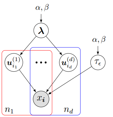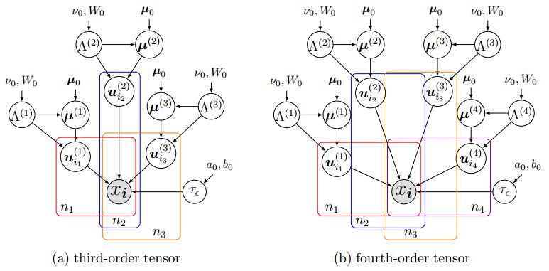 BGCP(贝叶斯高斯CP分解)模型作为贝叶斯网络和有向因子图的另一个例子。