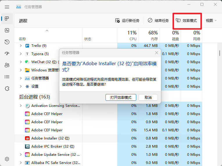另外,在 22H2 的资源管理器中我们也能看到更多采用「效率模式」运行的应用,也可以手动为部分应用开启效率模式。关于这个模式的介绍以及用法,不久前我们在另一篇文章里已有介绍。