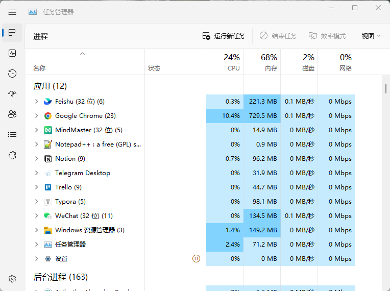 同样继承自 Windows 8 的任务管理器也在 Windows 11 22H2 里焕然一新。不同于旧版,新版的任务管理器从设计上采用了 Windows 11 推荐的设计风格,将原本横向的子标签页变为了侧栏,兼顾信息密度的同时保证了良好的可用性。和旧版任务管理器不同,这套新界面是支持暗色模式的。
