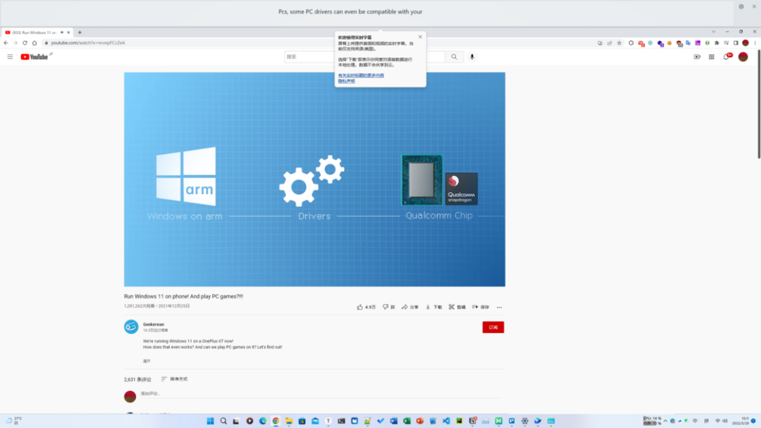 除了以上的新功能之外,Windows 11 22H2 还对辅助功能进行了加强。比如系统可以根据播放的视频实时提供本地字幕生成,只不过目前仅支持识别美式英语。