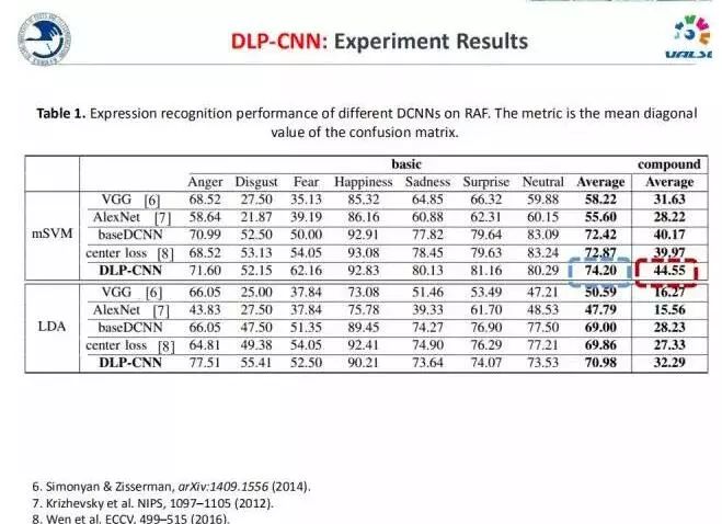 实验数据表明,DLP-CNN是能够有效提高在RAF-DB上的表情识别率的。当然该网络结构在这种具有挑战性的真实世界人脸表情数据上的表现能力也是有限的,我们也期望大家能提出更加有效的算法来提高在RAF-DB上的表情识别率。