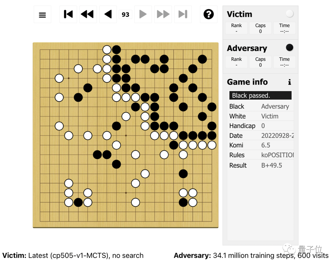 具体来说,该对抗策略并不是完全在做博弈,而是通过欺骗KataGo在对攻击者有利的位置落子,以过早地结束游戏。