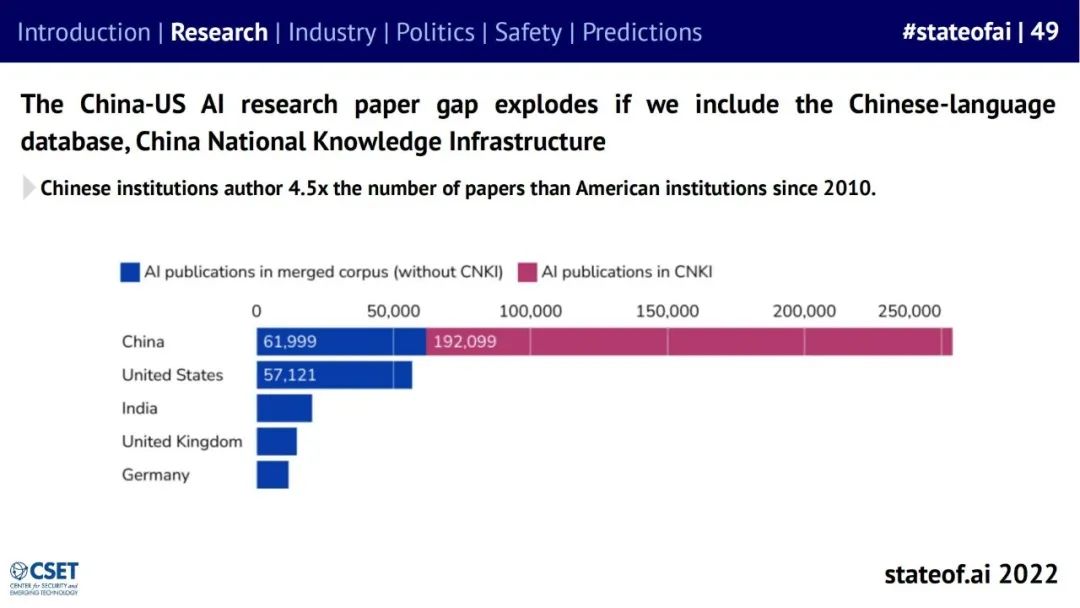 该报告从研究、产业、政策、安全、预测五个维度对最新人工智能发展现状和未来预期进行了深入分析和说明。 >>加入极市CV技术交流群,走在计算机视觉的最前沿