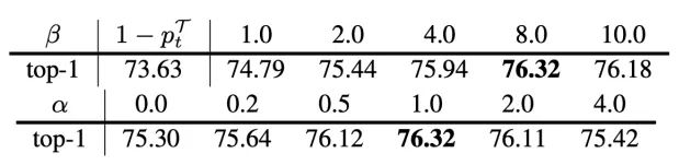 的自适应调整: DKD 目前还需要手工调整 的值才能达到最佳的蒸馏效果, 该研究希望可以通 过一些训练过程中的统计量实现对 的自适应调节(对于这一点, 该研究已经有了初步的探索, 详 情可见补充材料)。