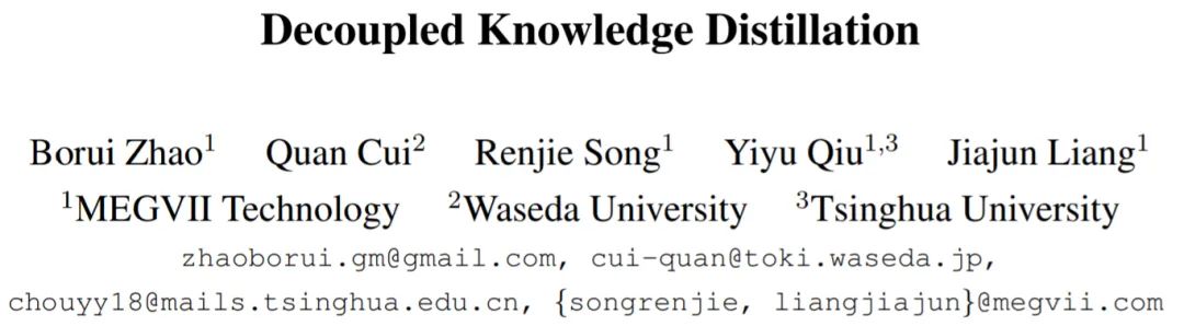 近年来顶会的 SOTA 蒸馏方法多基于 CNN 的中间层特征,而基于输出 logits 的方法被严重忽视了。饮水思源,本文中来自旷视科技 (Megvii)、早稻田大学、清华大学的研究者将研究重心放回到 logits 蒸馏上,对 7 年前 Hinton 提出的知识蒸馏方法(Knowledge Distillation,下文简称 KD)[1] 进行了解耦和分析,发现了一些限制 KD 性能的重要因素,进而提出了一种新的方法「解耦知识蒸馏」(Decoupled Knowledge Distillation,下文简称 DKD)[2],使得 logits 蒸馏重回 SOTA 行列。