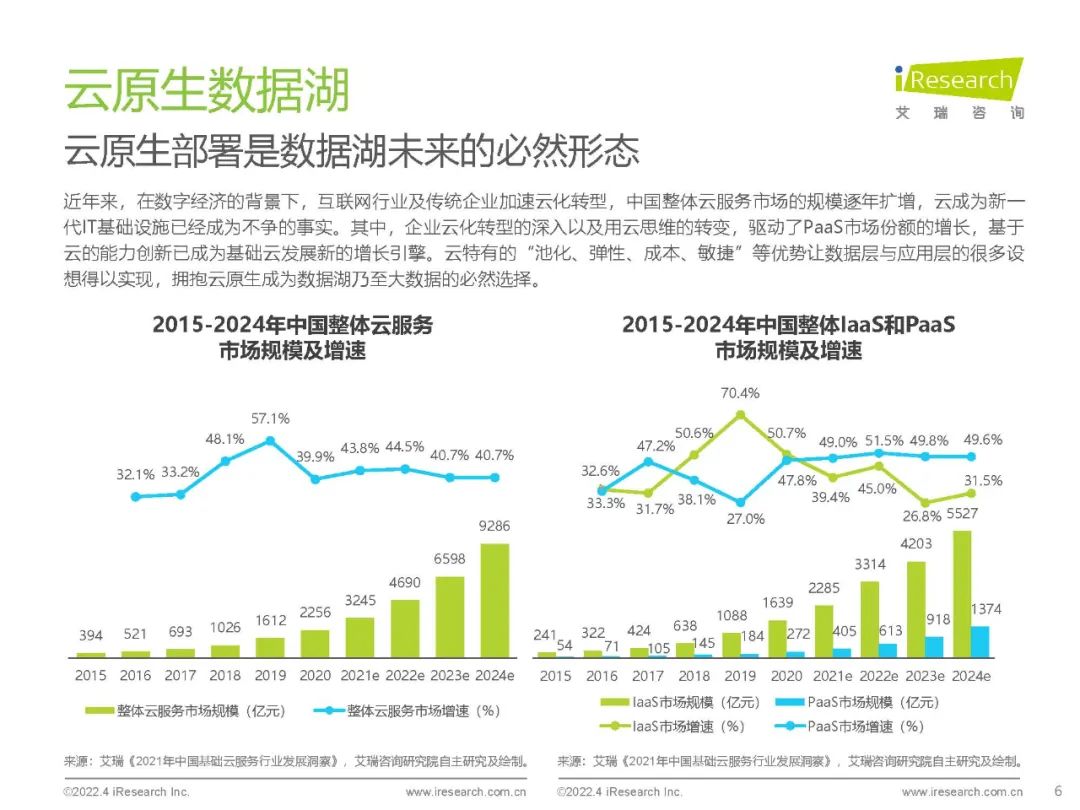 近日,阿里云发布《中国云原生数据湖应用洞察白皮书》。在数字经济的背景下,互联网行业及传统企业加速云化转型,中国整体云服务市场的规模逐年扩增,云成为新一代IT基础设施已经成为不争的事实。其中,企业云化转型的深入以及用云思维的转变,驱动了PaaS市场份额的增长,基于云的能力创新已成为基础云发展新的增长引擎。云特有的“池化、弹性、成本、敏捷”等优势让数据层与应用层的很多设想得以实现,拥抱云原生成为数据湖乃至大数据的必然选择。