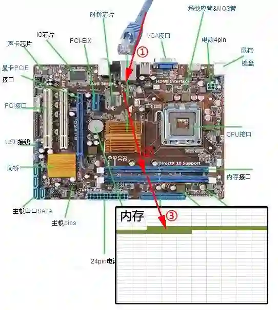 下边是一个典型的计算机结构图,计算机由 CPU、存储器(内存)与网络接口等部件组成,了解 Epoll 本质的第一步,要从硬件的角度看计算机怎样接收网络数据。