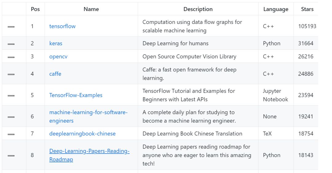 汇集了Top-200个最受欢迎的深度学习Github repo,按照star排序。