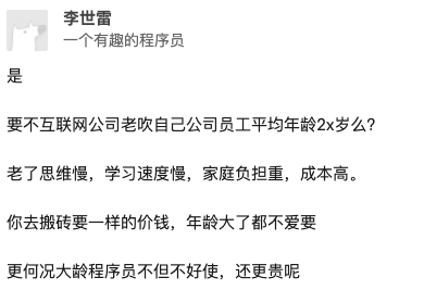 有些网友表示,「程序员吃的就是青春饭,尤其是应用级开发的程序员。」