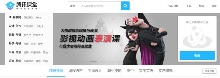 7)腾讯课堂:是腾讯推出的专业在线教育平台,聚合大量优质教育机构和名师,下设职业培训、公务员考试、托福雅思、考证考级、英语口语、中小学教育等众多在线学习精品课程,打造老师在线上课教学、学生及时互动学习的在线课堂。腾讯课堂目前已累计服务3亿用户,每周有超过百万的用户在线学习,在架课程超10万门。目前,超过5万的教育机构和老师通过腾讯课堂在线开课教学。