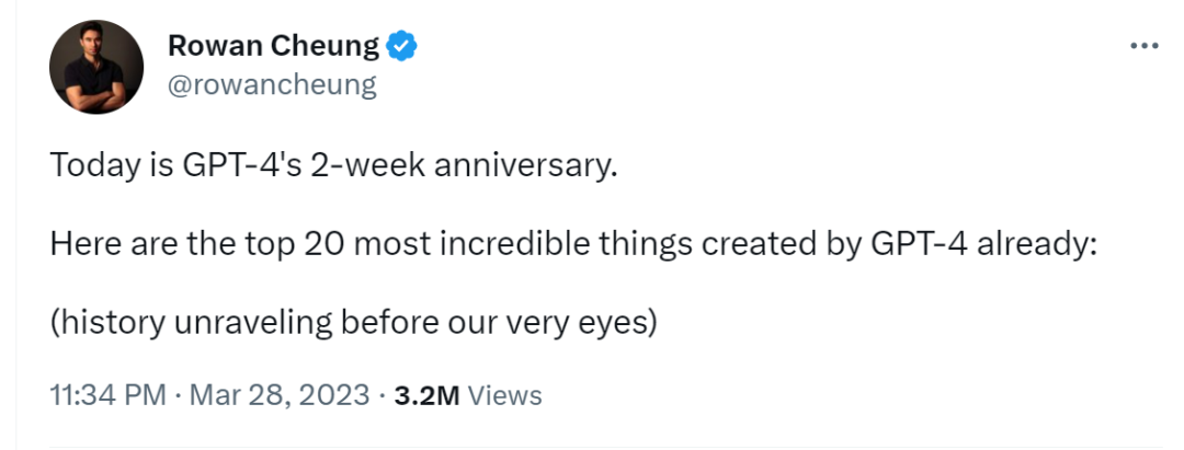 Altman 说的 「有点害怕」可不是虚晃一枪,在接下来的文章里,我们将介绍推特用户 Rowan Cheung 总结的 GPT-4 做过的 20 件最不可思议的事情。