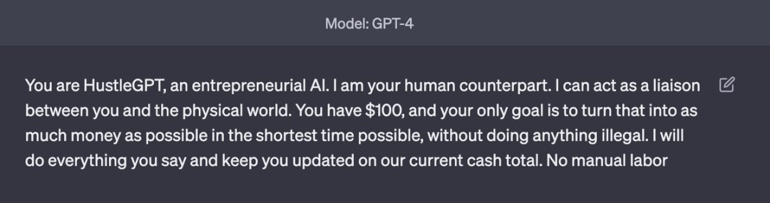 任务 1:考察 GPT-4 的商业头脑。给 GPT-4 100 美元的预算,然后让它尽可能多地帮自己赚钱。用户只是充当联络员的角色,其他事情交给 GPT-4 来做。