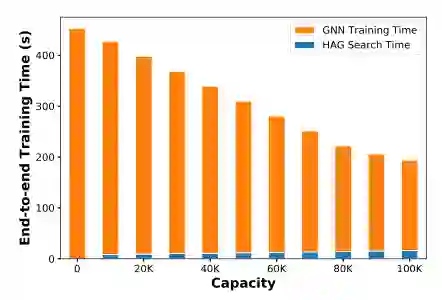图5显示了使用不同容量的HAG在COLLAB数据集中的端到端GCN训练时间。