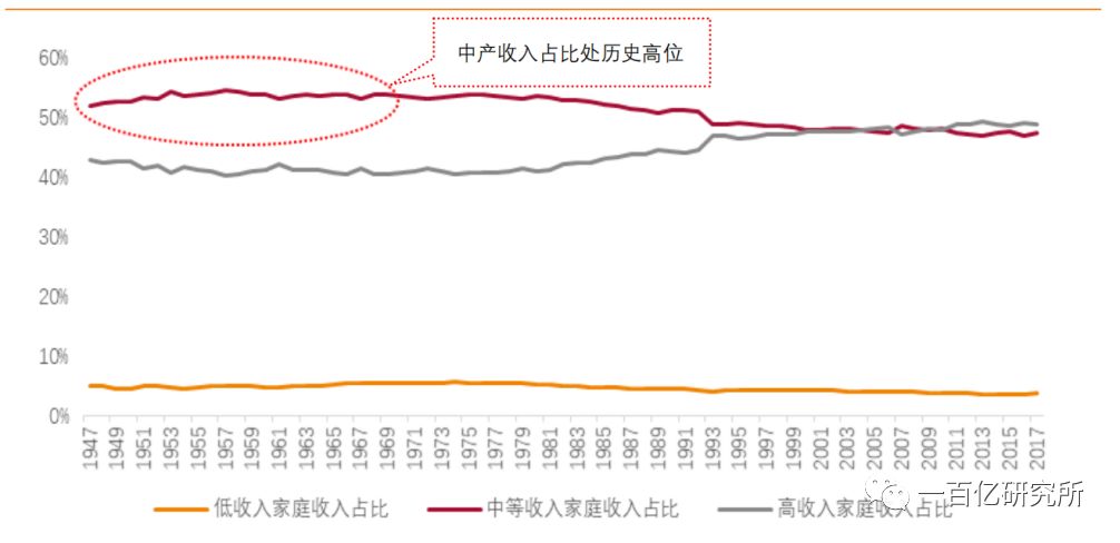 1946-1970 年,中等收入群体所拥有的社会财富达到战后至今的最高水平,居民消费水平普遍得到提升。