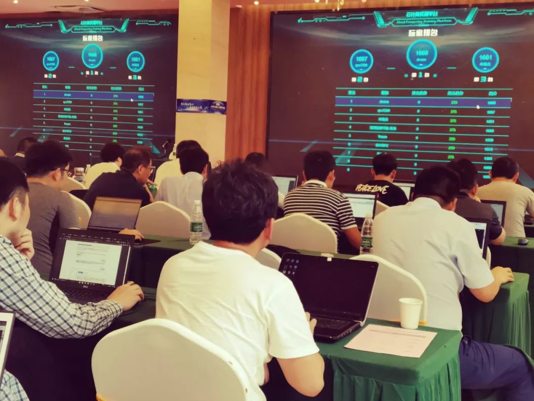 在最后半天的课程中,在谢超工程师为大家简要介绍云计算实验平台及其使用后,此次参加培训的老师们,基于前一天的学习,以部署Web网站应用为赛题,参照实训操作手册,在云计算实验平台上进行了全仿真的模拟比赛。比赛过程中,每一位老师的操作情况会在平台实时显示与呈现,每个加分项与扣分项都会直接影响每一位老师的分数和排名。